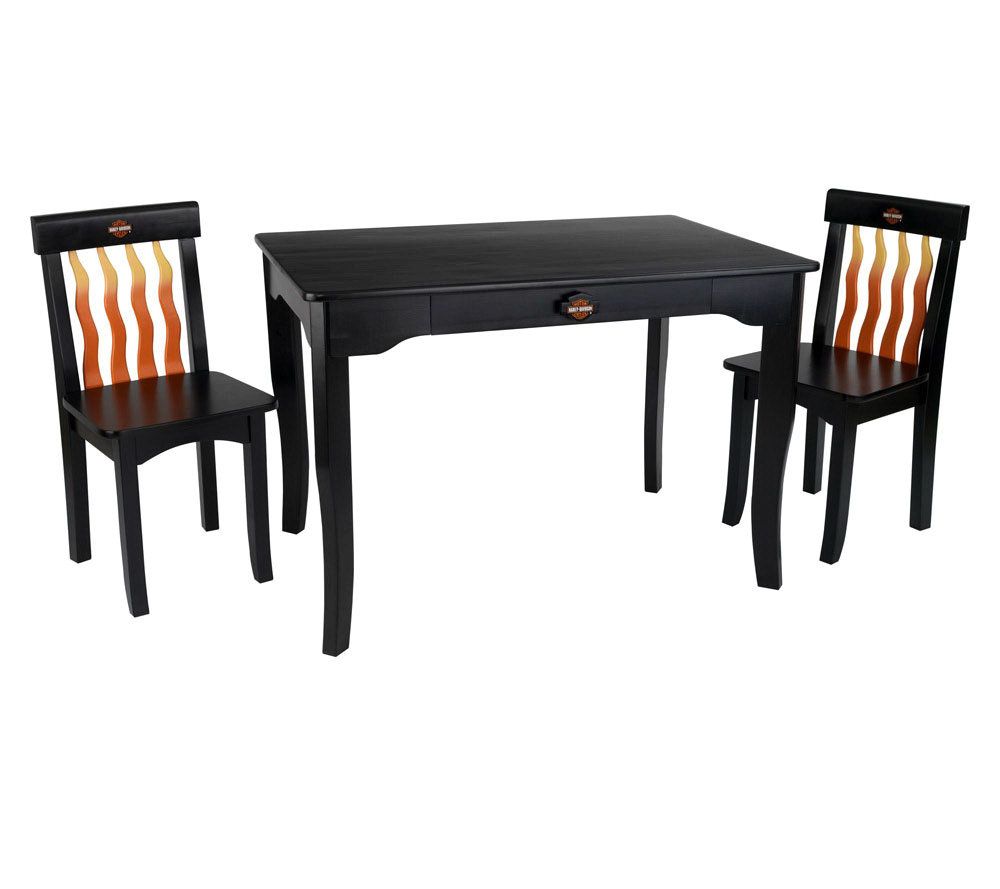 The table and chairs are themed car guy. 30 h x 24 w x 24.75 d / 76 x 61 x 63 cm seat height: Adjustable weight poker table and chairs set. See more ideas about davidson homes, harley davidson, harley. Table and chairs also sold separately. Set includes a table and four chairs. Kidkraft harley davidson table amp 2 chair set if you need a boost of fun and appeal for your home setting then this set that consists of a table and two chairs is the finest choice you can make, especially with its bright orange finish and harley davidson theme. Hand set metal studs and custom etched bar & shield flame metal plates alternate around. By evergreen flag & garden. Retro diner chairs complement both pieces with matching logos and upholstery. This piece of furniture is a high quality bar stool that has got a comfortable, padded round seat and its frame features a neutral black color. 4.4 out of 5 stars 29. Visit our website for great selection of harley davidson accessories & harley davidson parts for riders, collectors, and fans.